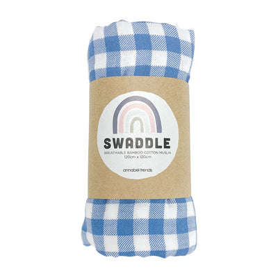 Annabel Trends - Muslin Swaddle - Gingham Blue