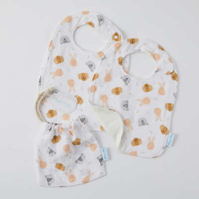 Jiggle & Giggle - Muslin Bib 2pk - Animal Faces