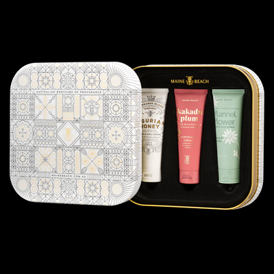 For a limited time, regenerate loved hands with our unique Collection of luxurious, nourishing Crèmes. Includes a 100ml Ligurian Honey Hand & Nail Crème, a 100ml Kakadu Plum Hand & Nail Crème and a 100ml Flannel Flower Hand & Nail Crème. Presented in an exclusive Maine Beach keepsake tin, perfect to store your precious possessions.