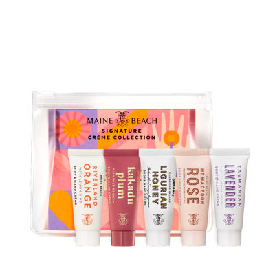 Five signature luxe body and hand crèmes featuring hero Australian Ingredients each with beautiful distinctive fragrances.