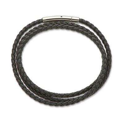 Palas - Fine Leather Plaited Wrap Bracelet - Black