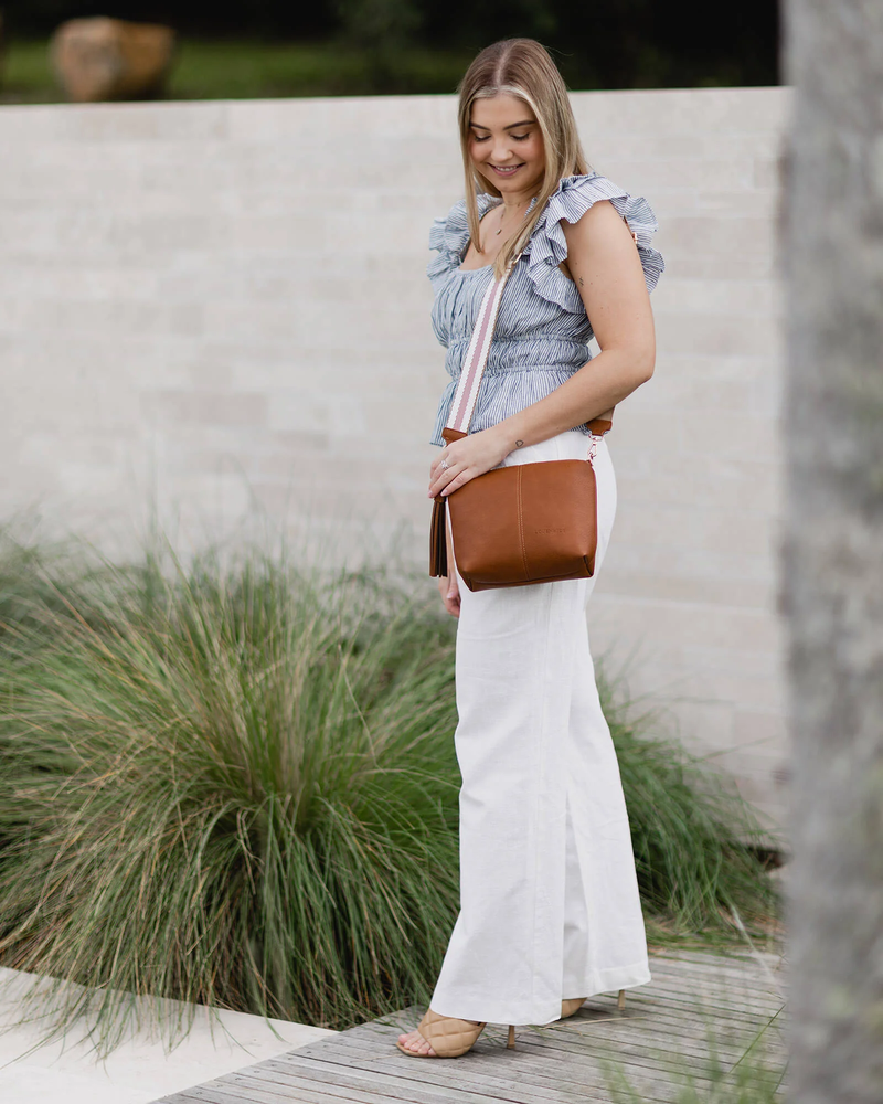 Louenhide - Kasey Crossbody Bag - Tan - Stripe Strap