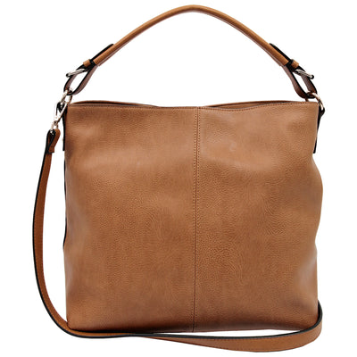 External Features: Soft neutral tones in lightly textured fabric. Tan shoulder strap has buckle detail.