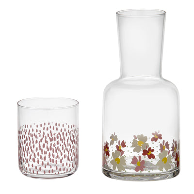 This Emporium Floral Spotty Bedside Carafe is both stylish and practical. Made from glass, the carafe has a wide body and floral designs. The glass tumbler is the perfect size with pink spot designs. Fill with water and place near your bed during the night to quench thirst. Enrich your home with this beautiful Floral Spotty Bedside Carafe from Emporium.
