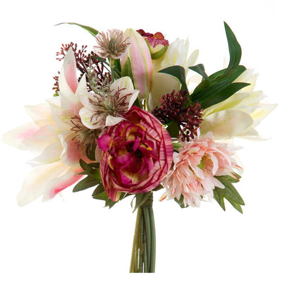 Peony Anemone Skimmia Bouq 30cm Pink & Burgundy