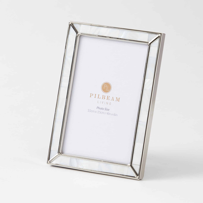 Display cherished memories with our stunning range of frames. The Perla 4 x 6” Photo Frame is the perfect accessory to complement any décor around the home or office. The inherent beauty of Mother of Pearl is highlighted in this elegant frame showcasing its iridescent tones. Each pearl square is meticulously arranged to form a multi-hued patchwork pattern, making each frame a unique piece of art. With a velvet flocked back and easel stand, display photos in landscape or portrait orientation. The ideal nostalgic addition for any room or a thoughtful gift for that someone special.