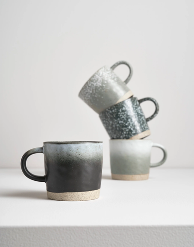 Set of four, individually hand glazed stoneware mugs. Perfectly suited for your home.