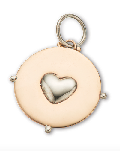The circle heart charm is a large sized charm 26 x 26mm and is handcrafted from bronze with a raised sterling silver heart motif and dotted detailing around the frame. The circle heart charm is part of the ‘from the heart’ collection which was inspired by CEO Anna Dimond's love of hearts. The 'from the Heart' range symbolises love in anyone’s language and is the perfect charm offering for the special people in your life for any occasion.