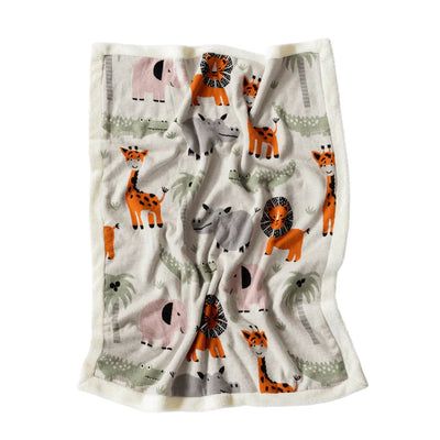 The Jungle Safari Sherpa baby blanket is a soft and luxurious blanket that is perfect for keeping your little one warm and cozy. Made from high-quality, plush materials that are gentle on your baby's delicate skin, this blanket features a fun and colorful jungle safari design.