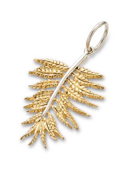 The Fern Leaf charm is handcrafted from brass with a sterling silver stem and bail, a large size charm measuring 20 x 28mm. Our silversmiths have hand carved this intricate illustration by Indigo Buck to create this stunning and detailed design. The Fern Leaf represents confidence, wealth and happiness and can be worn elegantly on a simple gold or silver chain or layered with other Palas charms to create a unique design tailored to yours or your loved ones personality.