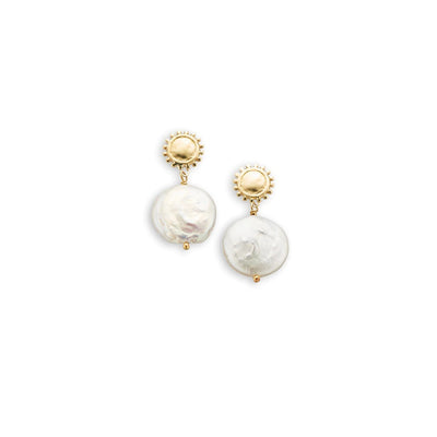 Palas - Earrings - Golden Sun & Moon Pearl - Silver, Brass & Pearl