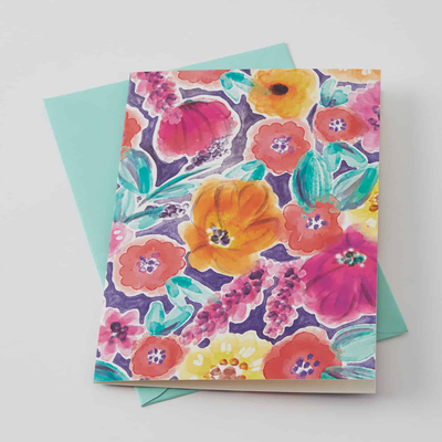 Send warm notes of hello, happy birthday wishes or sweet thank-you’s with this pack of 10 greeting cards. Each card features a bright, floral design on the cover and a blank interior for personal messages to be composed. Cards come with a matching envelope and are packaged together in a tidy teal-coloured storage box with an acetate lid and wrap.