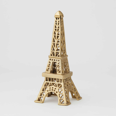 Bring a touch of Paris to your bland shelves, tables or mantles with the Eiffel Tower Sculpture. Made from Aluminium and featuring a gorgeous gold colour, this decorative piece will add interest to any space.