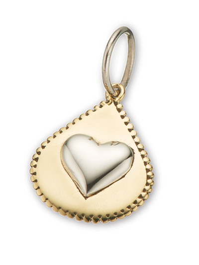 The teardrop heart charm is a medium sized charm 18 x 16mm and is handcrafted from brass with a raised sterling silver heart motif and dotted edge detailing. The teardrop heart charm is part of the ‘from the heart’ collection which was inspired by CEO Anna Dimond's love of hearts. The 'from the Heart' range symbolises love in anyone’s language and is the perfect charm offering for the special people in your life for any occasion.