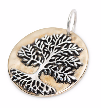 Bronze large hammered charm with delicately handcrafted sterling silver tree of life motif. This stunning charm is a wonderful celebration of family, heritage, connection and togetherness. It makes the perfect present for your treasured family members or wear it yourself as a daily reminder of your special clan and all the joys that family brings. Add an initial to further personalise the bracelet or necklace design and create a truly special gift that will always be treasured and loved. This classic handmade charm is also perfectly complemented by other Palas family or mum charms so can be added to over time as the family grows and more of life's special moments are celebrated.