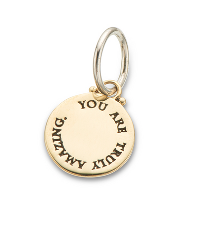 Silver and brass round small charm engraved with the wording 'You are truly amazing'. This beautiful feature piece is a daily reminder to love who you are and adds an element of love to any collection and layers perfectly with other Palas charms. It makes a wonderful gift for the much-loved and treasured people in your life. Perfect for birthday gifts, graduation presents or just because... and wear it together with an initial charm to further personalise your necklace or bracelet.
