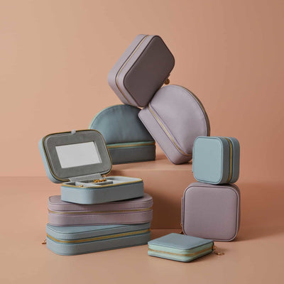 The simple and compact design of the Calla Jewellery Case makes it ideal for carrying jewellery wherever you go. Organise pieces with the built-in soft suede compartments that keep jewels secure and easy to find. Featuring a pebble faux leather textured finish and gold metal hardware for a simple, minimalist style and a small mirror to edit the finished look.