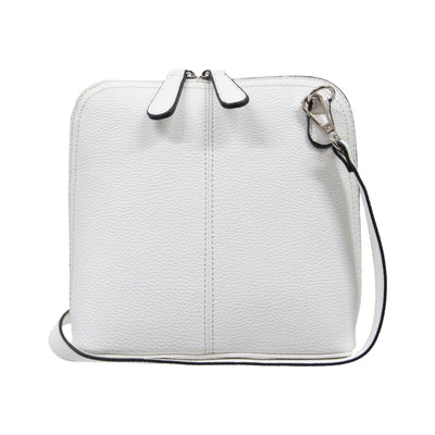External Features: Kissing zips open to the base, so bag opens widely. Highlight stitching on front and back of bag.