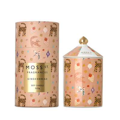 A hand-poured Limited Edition ceramic candle that fills your room with the delicious fragrance of Gingerbread. Featuring luxe foiling and a festive print, this ceramic vessel can be re-used long after the candle is finished.